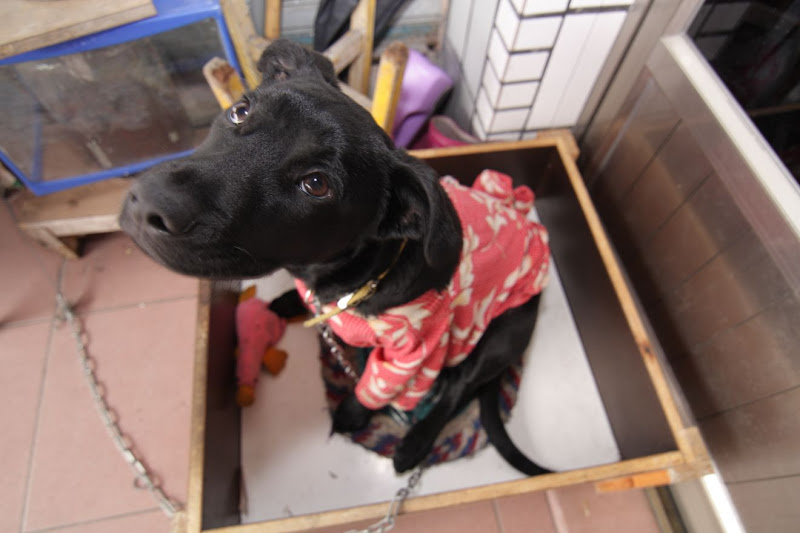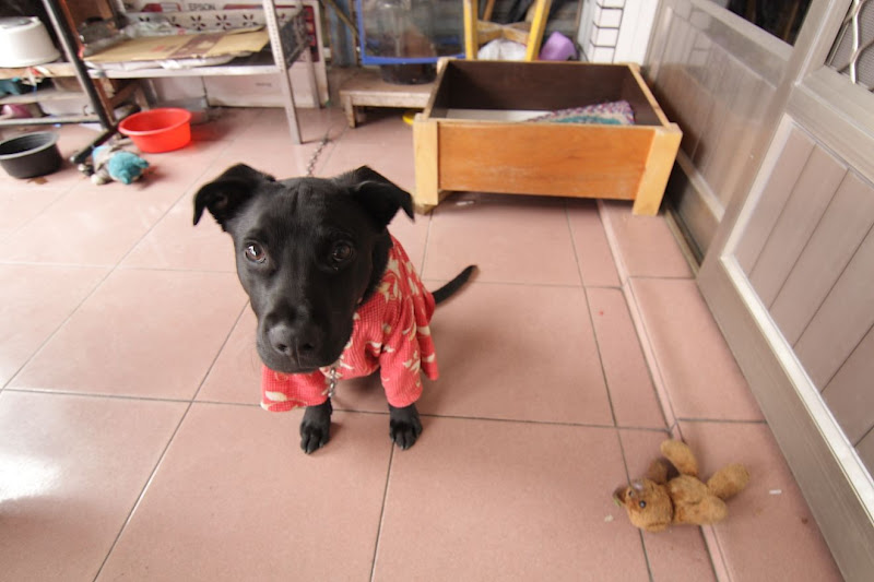 前幾天因為有寒流來襲,阿母怕黑嘛嘛在外面會受凍所以幫他穿了件衣服