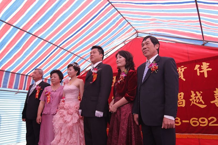 在鄉下的喜宴裡這種新人全家罰站的鏡頭是必備的