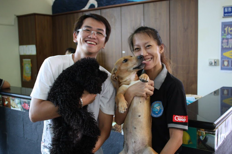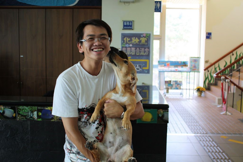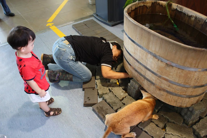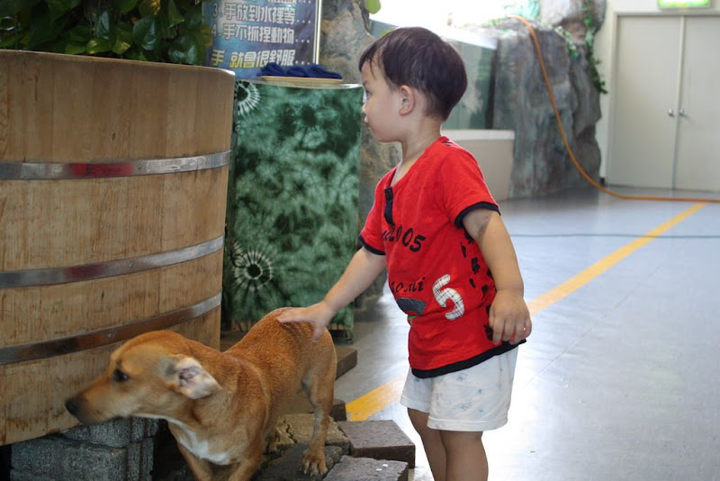 在用完餐後我帶他們到海水館,除了看海洋生物外,還可以讓他兒子玩狗