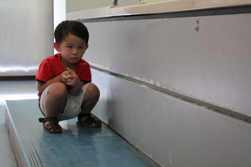 在觸摸池的時候諺諺突然不講話蹲在原地,他爸說這表示他正在蹲大便= ="