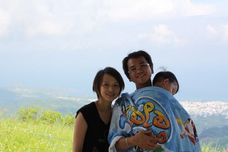 在山頂上拍的這張全家福,小鬼終於安靜下來了,因為他睡著了= =+