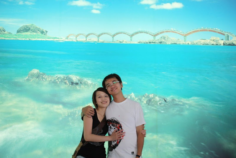 逛完一樓後在二樓的三仙台"看板"前幫他們夫妻倆拍了一張照片