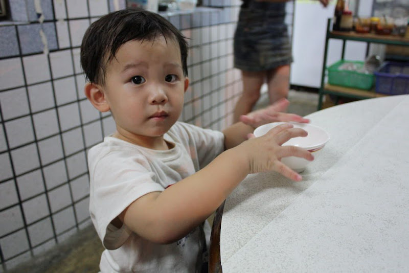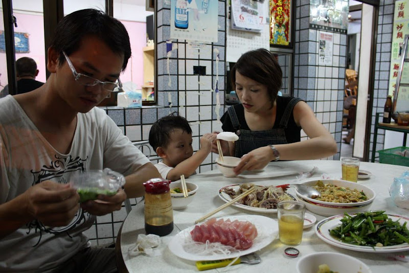 他兒子非常的好動看到東西就想要拿來玩,所以就被他媽媽拿筷子教訓 這就是今天的菜色了加上台啤一瓶,今天是喝個止口渴的因為等下還要上班